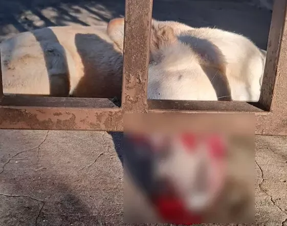 A vira-lata Kiara foi encontrada machucada e ensanguentada na manhã deste sábado (31), no Bairro Amambaí, em Campo Grande. Segundo a família, ela tem o costume de colocar o focinho para fora do portão, o que dá a entender que alguém tenha passado e maltratado.