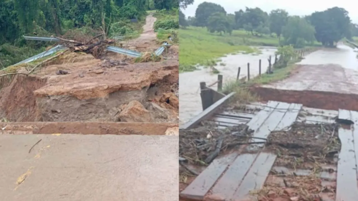 Há danos em pontes e erosões que dificultam o acesso à região da Chácara Santa Maria Pontal. Também foram identificados danos na cabeceira do Rio do Peixe.