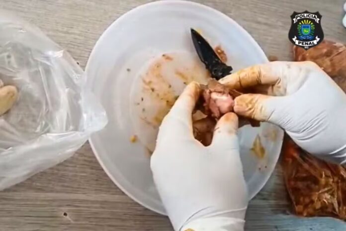 A droga foi encontrada durante a revista de alimentos e objetos levados por visitantes, realizada por policiais penais.