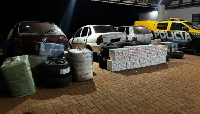 Em seguida, durante vistoria em um Fiat Uno, também conduzido por um homem de 28 anos, foram localizados óculos, perfumes, cigarros eletrônicos e mais 10 pneus. A mercadoria foi avaliada em R$ 23 mil, e o veículo em R$ 25 mil. Foram R$ 48 mil de prejuízo ao crime.