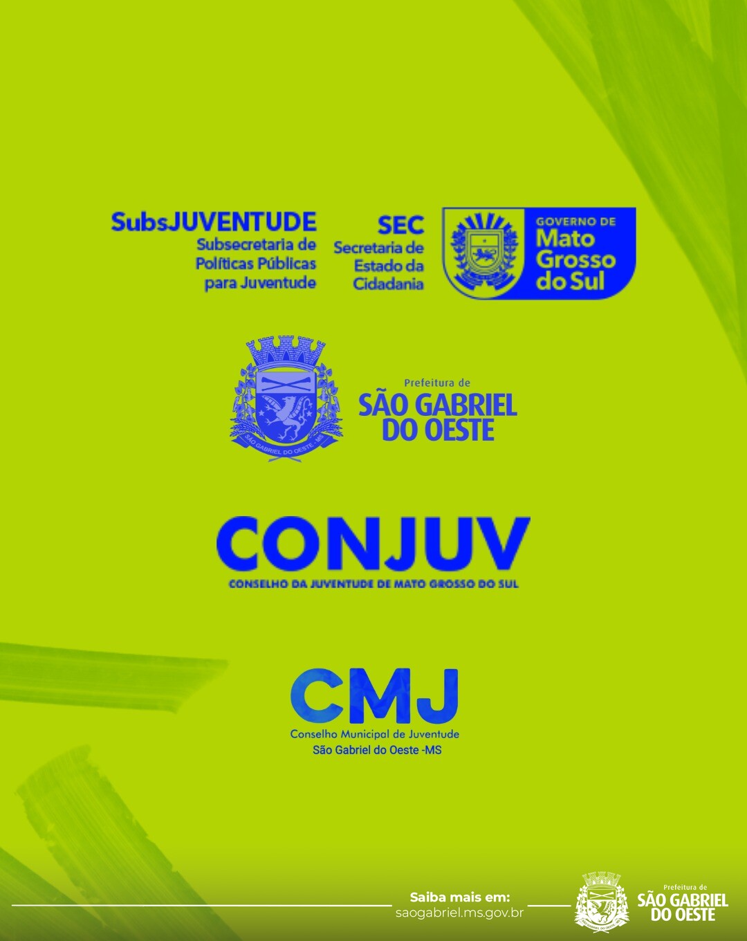 A ação é promovida pelo Governo do Estado, por meio da Secretaria de Estado da Cidadania, Subsecretaria de Políticas Públicas para Juventude e do Conselho Estadual da Juventude, em parceria com a Prefeitura de São Gabriel do Oeste.